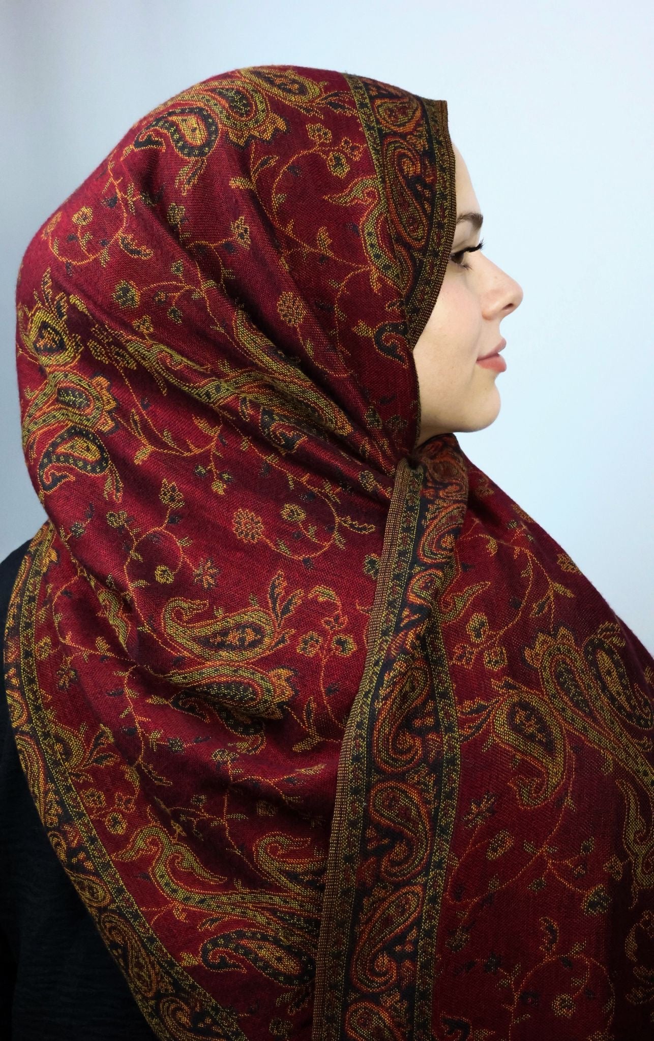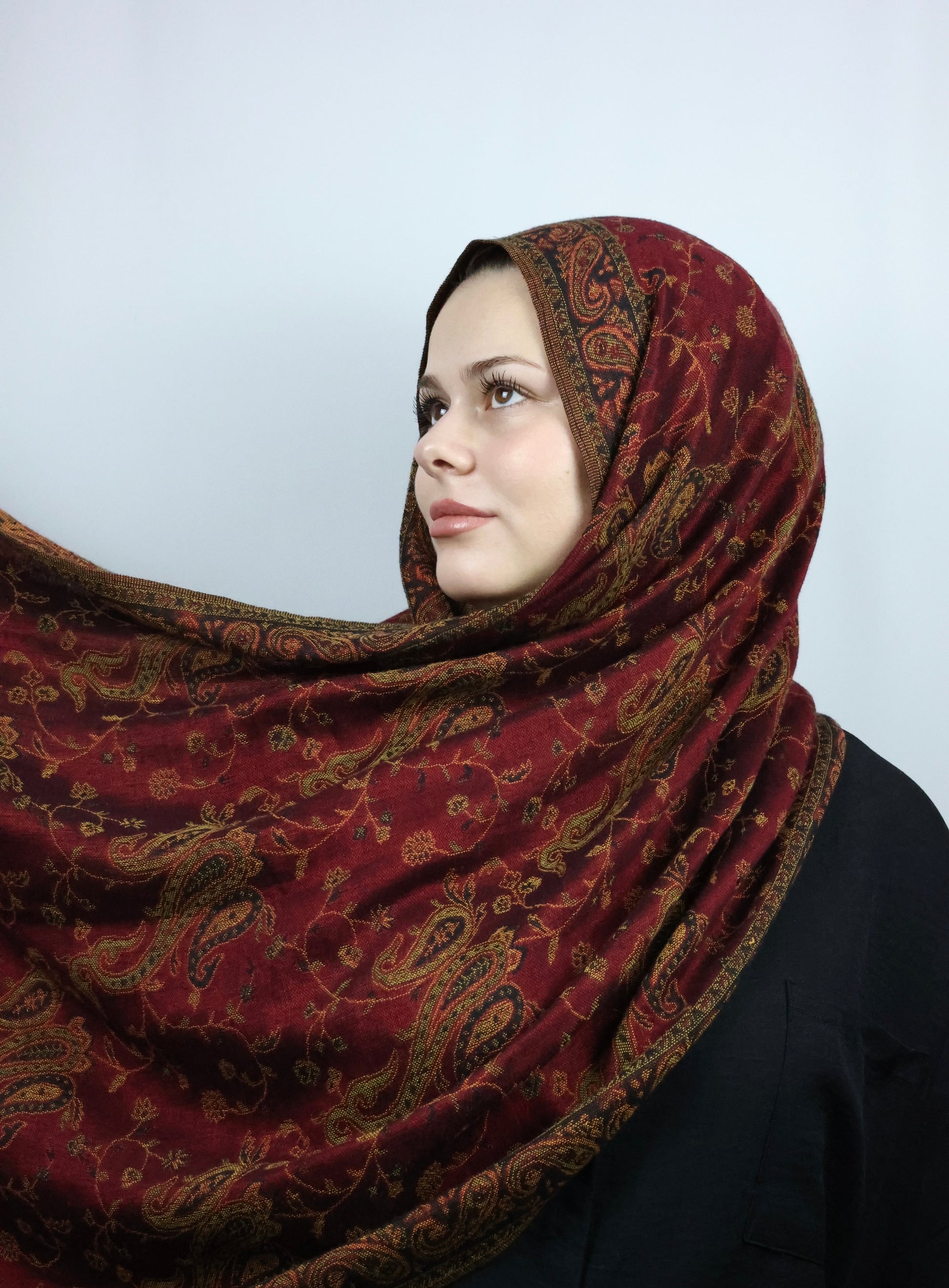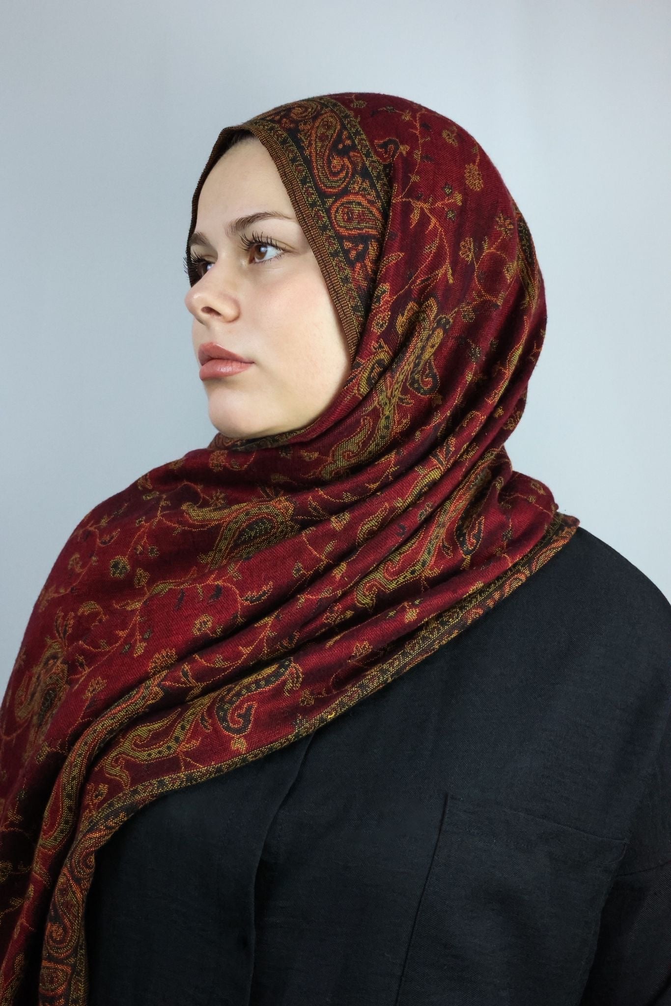Verleihen Sie Ihrem Outfit mit dem Pashmina Schal in Dunkelrot eine warme, elegante Note. Dank seiner großzügigen Maße von 70 cm Breite und 200 cm Länge lässt sich der Schal vielseitig stylen als wärmender Kopftuch, Begleiter oder modisches Accessoire.